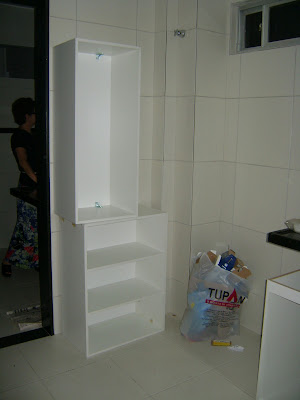Pra variar, estou com insônia. Já já estamos em 1h da manhã e eu to com a macaca!! (não, não estou em companhia de uma chipanzé, estou, como dizemos aqui, com a gôta serena, ligada em 220V!!!). Então, aproveitando essa vida insone, vim trazer uma novidade quentíssima pra vocês: Começou a montagem da minha cozinhaaaaaaaaa!!!!! Mas não era pra segunda-feira?? Pois é amores, mas, como o montador terminou o serviço, o pessoal da Sandrin me ligou correndo e hoje começamos!! =))